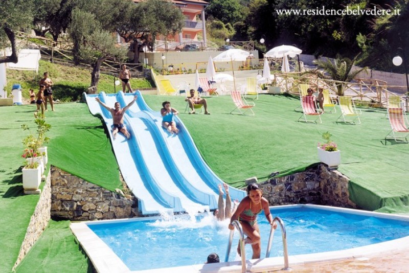 The Residence Belvedere offers a large outdoor space in a unique setting, nestled in a hillside populated by olive trees. Between the trees, waiting for the large swimming pool with solarium and bar service. For children the fun is guaranteed thanks to the waterslides multitrack-dedicated, with mini-pool to ensure freedom of enjoyment to the young guests and separately relax for adults.