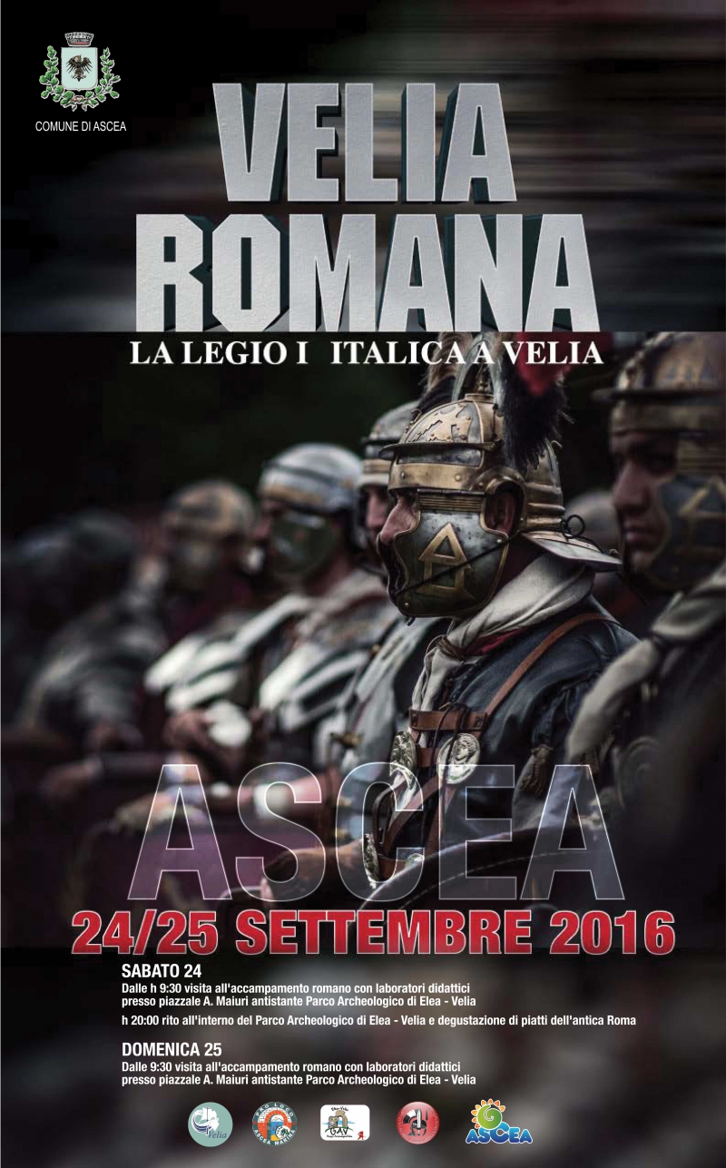 Al via la seconda edizione di VELIA ROMANA, l’evento di ricostruzione storica organizzato dal Comune di Ascea, in collaborazione con il Parco Archeologico di Elea- Velia, la Pro Loco di Ascea e il G.A.V. (Gruppo Archeologico Velino).
