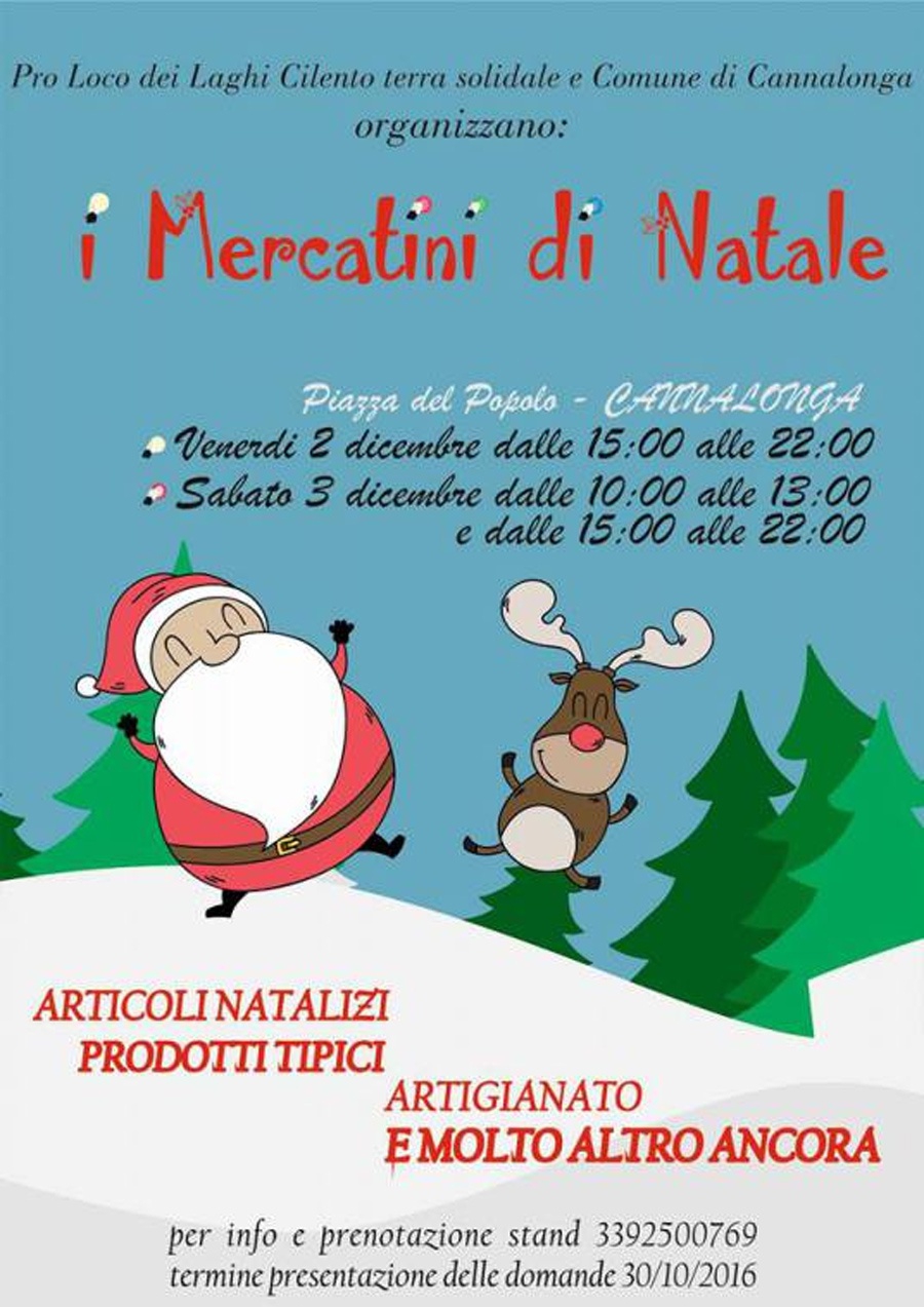 Si inizia venerdì 2 dicembre a partire dalle ore 15,00 sino alle 22,00 per poi continuare Sabato 3 dalle 10,00 alle 13,00 e dalle 15,00 alle 22,00. Tanti gli stand dove si potranno trovare tanti articoli ed idee regalo,ed in aggiunta, stand enogastronomici dove si potranno degustare specialita’ tipiche cilentane natalizie.