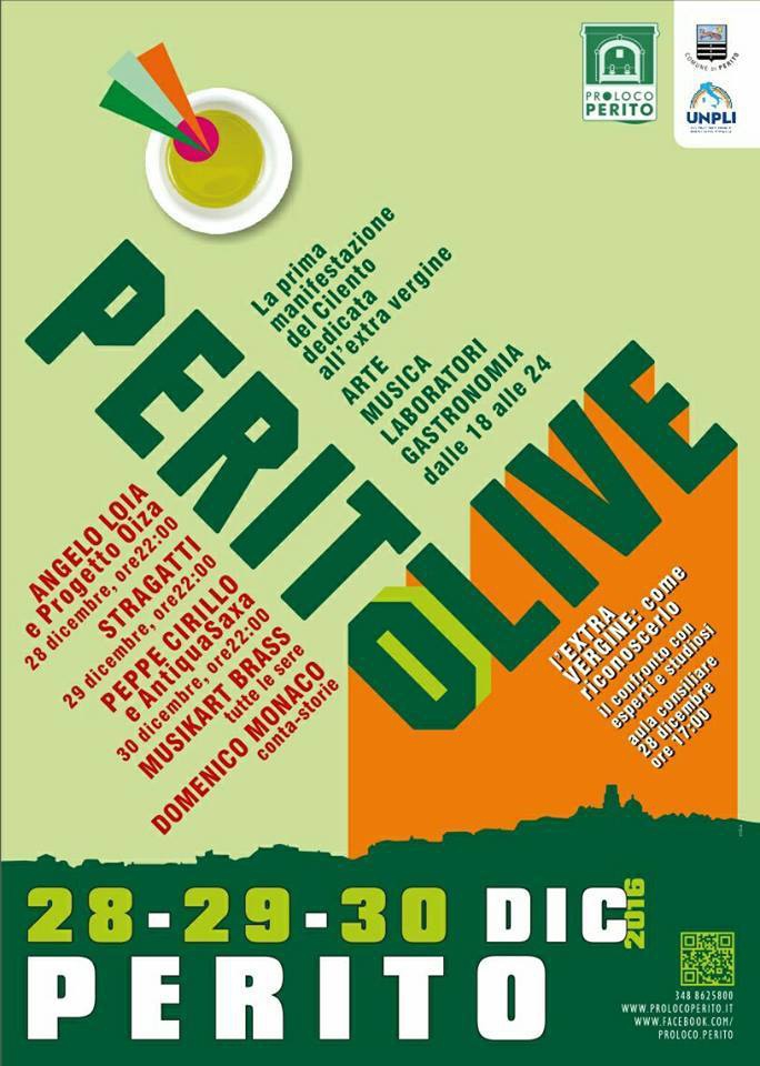 La manifestazione PeritOlive si caratterizza come vera e propria degustazione dei prodotti tipici legati al territorio mista all’allegria della festa. Oltre al momento gastronomico e musicale si aggiunge quello culturale con i seminari sull’olio extravergine di oliva e quello del divertimento con il laboratorio “I quattro elementi” pensato strettamente per i più piccoli durante il quale i bambini interagiranno con l’olio di oliva e prepareranno dei piccoli lavoretti che verranno esposti lungo il percorso della manifestazione. L’iniziativa coinvolge i privati cittadini, volontari, associazioni e le attività economiche locali.