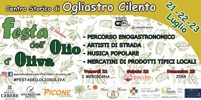 Seconda Edizione della Festa Dell'Olio D'Oliva che si terrà ad OGLIASTRO CILENTO (Sa) il 21-22-23 LUGLIO 2017.