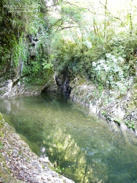 Si sviluppa per circa 500 metri e il corso del fiume è caratterizzato da specchi d'aqua di varia lunghezza, incassati tra pareti rocciose alte circa 30 metri e coperte dalla volta verde delle chiome di alberi secolari. La forra viene attraversata con canotti, "pilotati" dai Soci del GET, nei punti ove l'acqua risulta essere profonda e l'emozione che si prova quando ci si immerge tra le alte e silenziose pareti strapiombanti è qualcosa che resta scolpita nella mente, un ricordo indelebile.